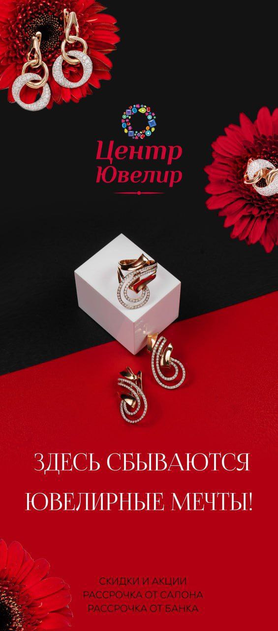 Центр Ювелир это не просто ювелирная сеть салонов драгоценностей, это пространство, где каждый покупатель найдет свое украшение, которые не просто дополнят образ,а подчеркнут индивидуальность и неповторимый стиль!